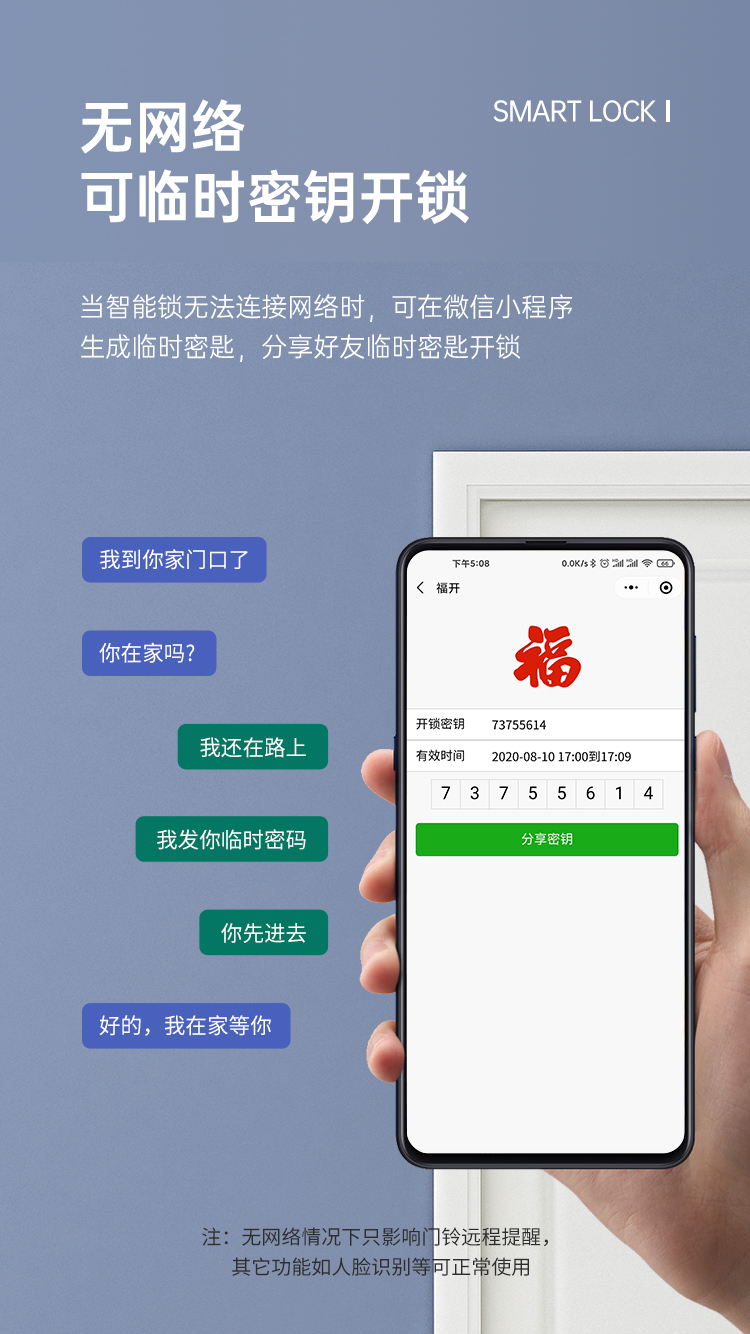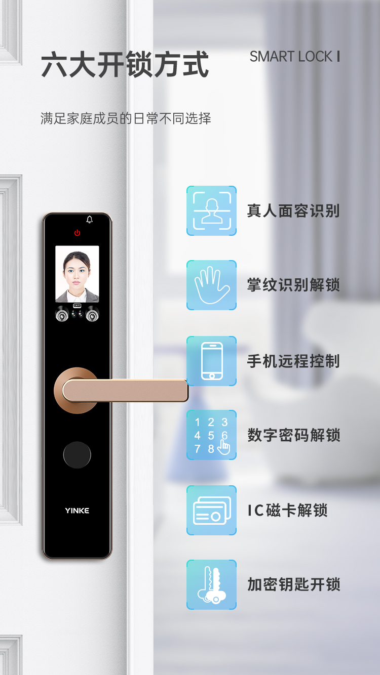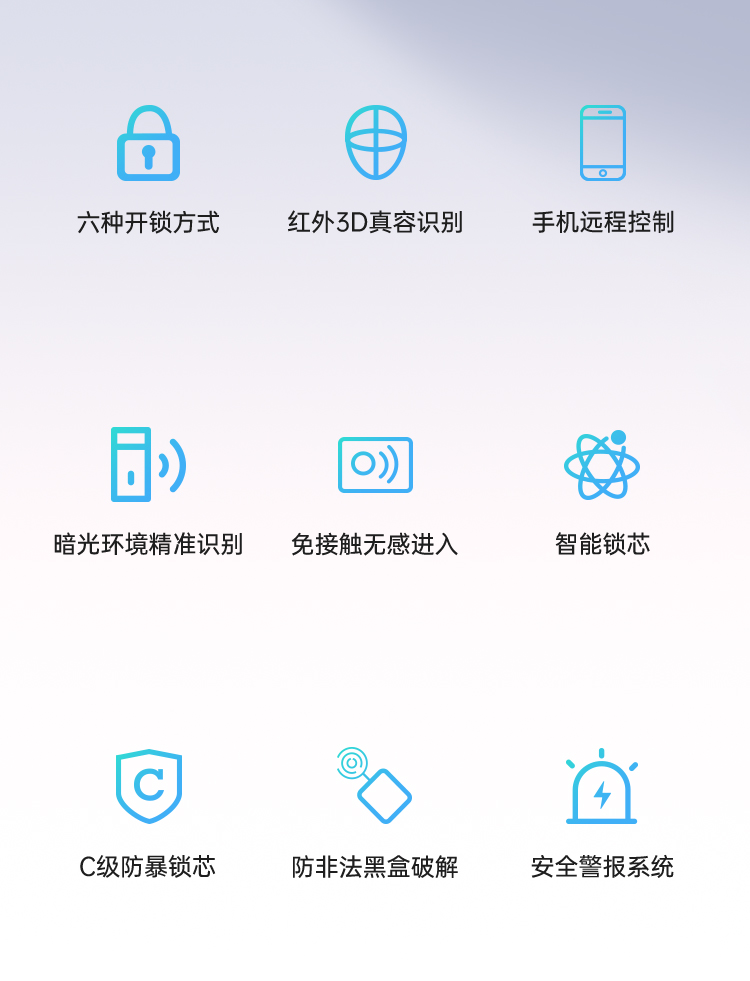 開(kāi)鎖方式:人臉識(shí)別,掌紋識(shí)別,密碼,刷卡,微信小程序,機(jī)械鑰匙,WIFl遠(yuǎn)程開(kāi)鎖